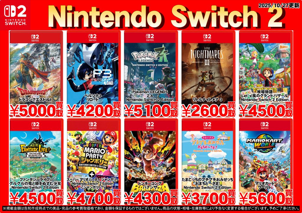| 2025年10月27日時点の最大買取価格を掲載予定です。 掲載金額は告知作成時点での美品・完品の参考買取価格であり、金額を保証するものではございません。 商品の状態・相場・店頭在庫数等により予告なく変更する場合がございます。 予めご了承ください。 |