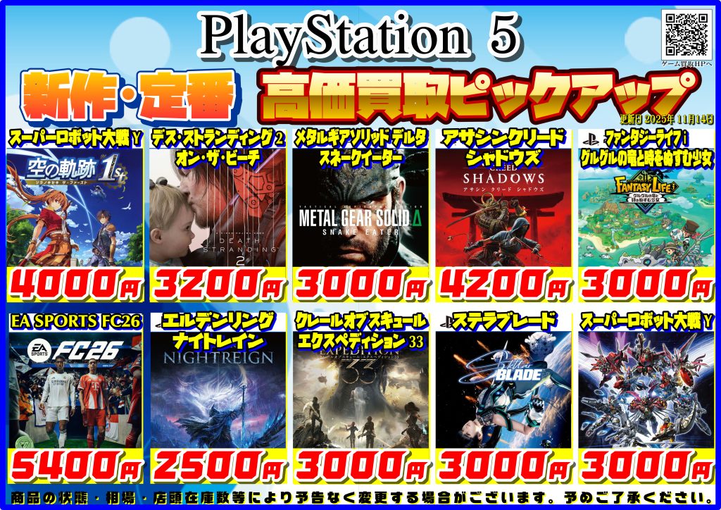PlayStation 5ソフト高価買取中!!
