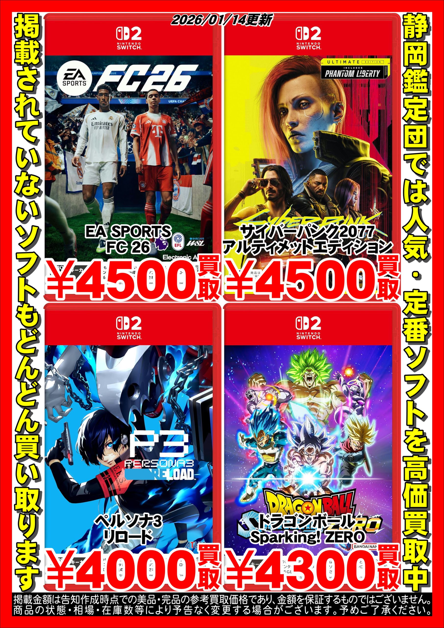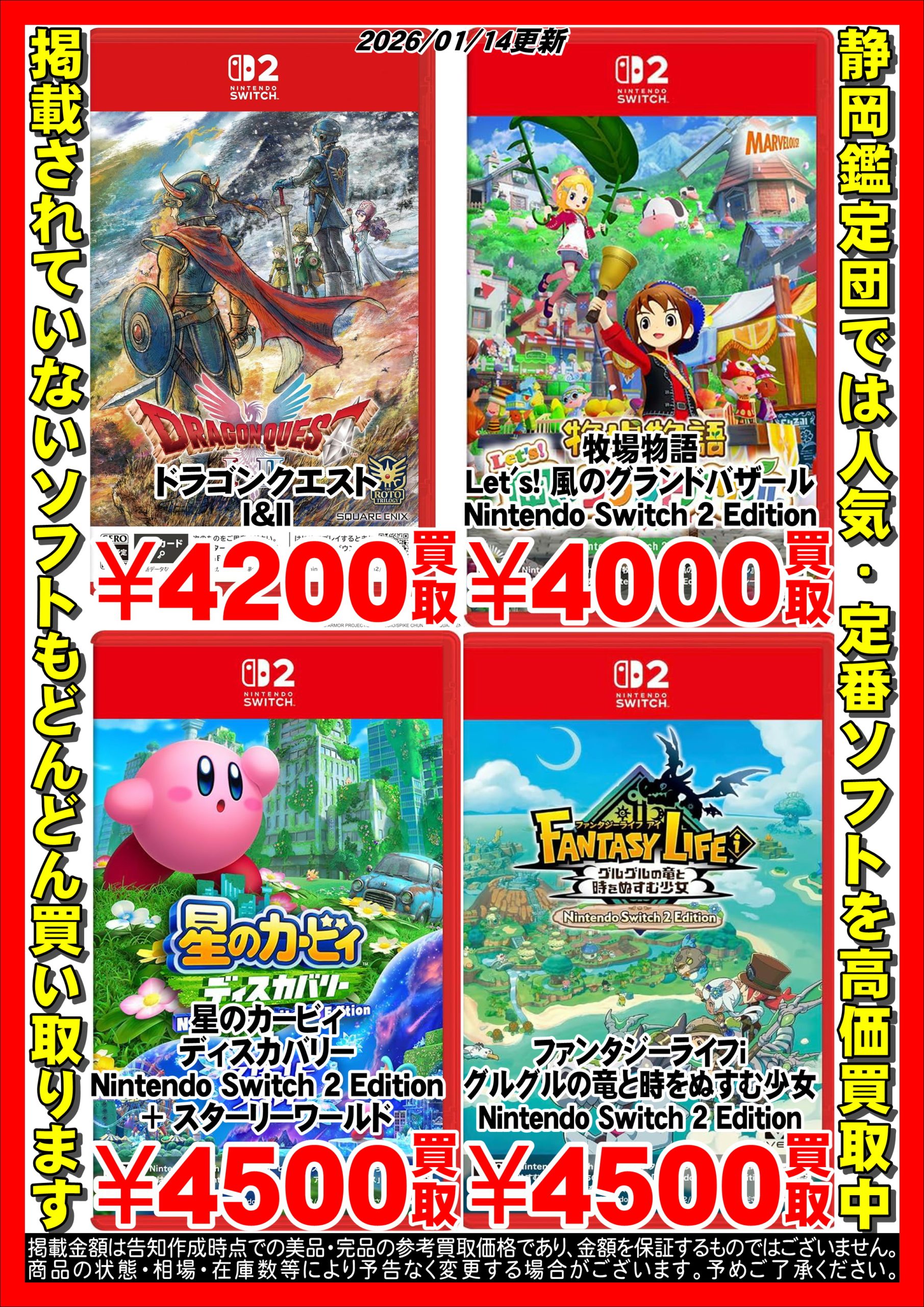 | 2026年01月14日時点の最大買取価格を掲載予定です。 掲載金額は告知作成時点での美品・完品の参考買取価格であり、金額を保証するものではございません。 商品の状態・相場・店頭在庫数等により予告なく変更する場合がございます。 予めご了承ください。 |