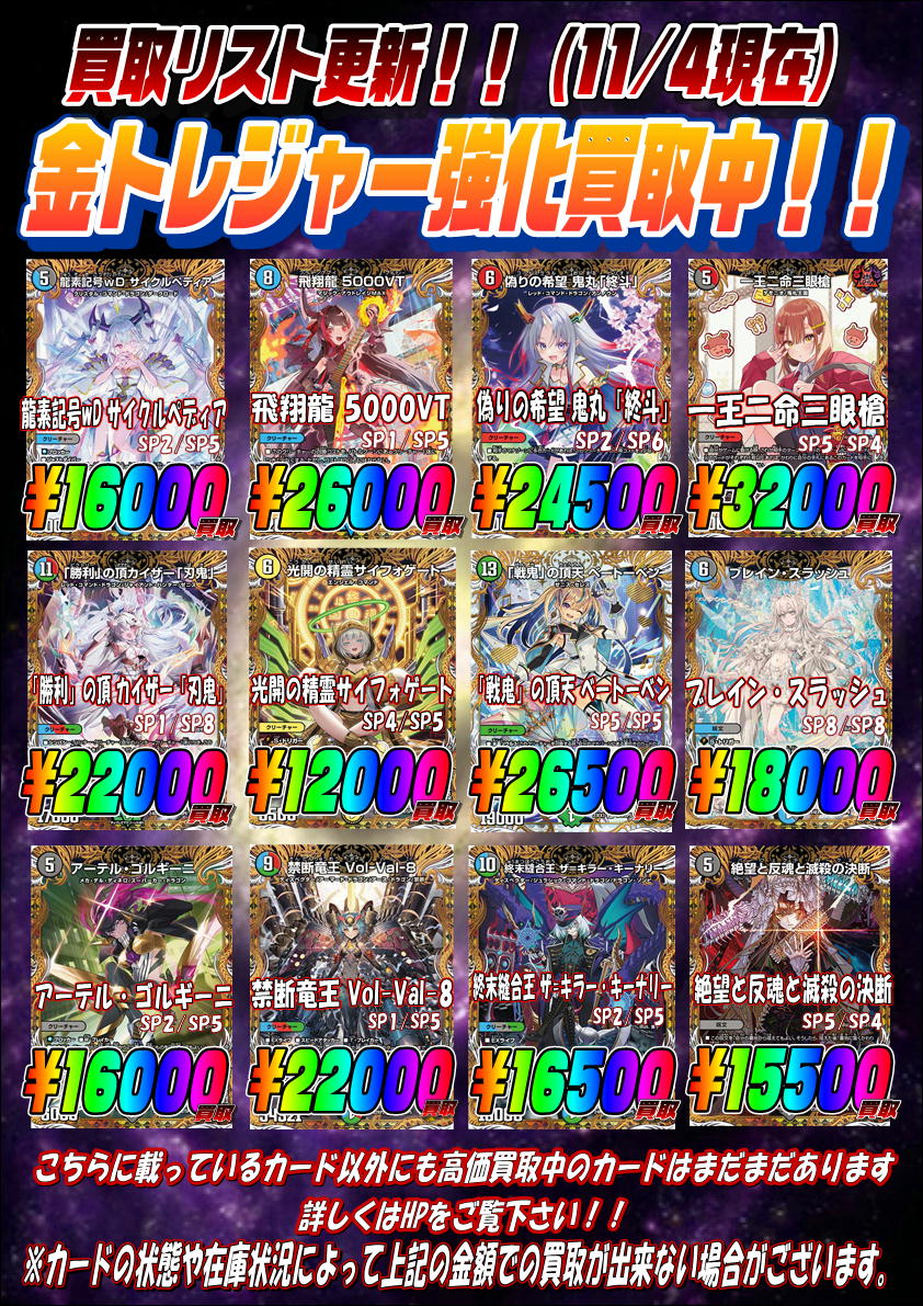 | SR | 多色 | 流星のガイアッシュ・カイザー | 銀トレジャー | 800 |